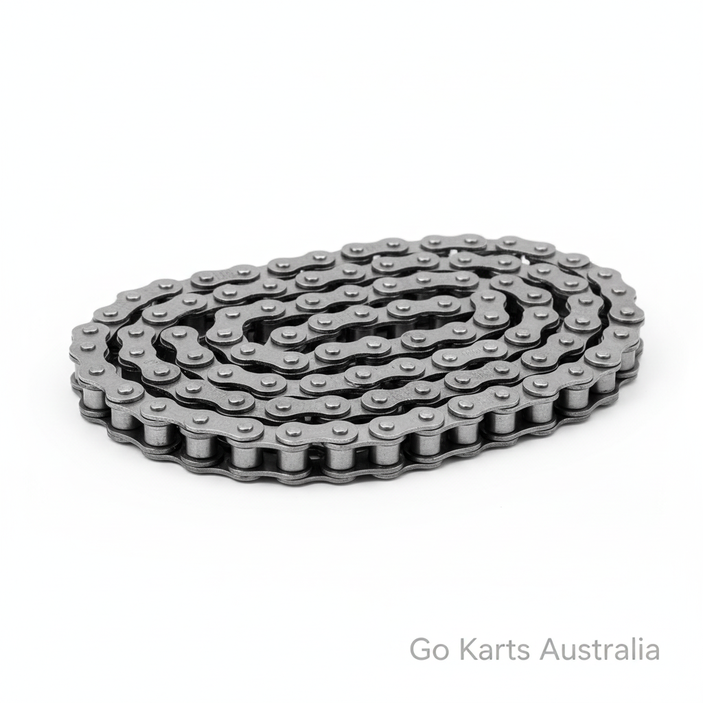 Purpose-built 420-pitch drive chain for 6.5 hp go-kart platforms, supplied in custom 100 mm segments (approximately 4 links) to support flexible drivetrain configurations. Standard stock runs 30 links at 770 mm; extended lengths available via roll-stock ordering for frame geometries requiring additional chain travel. Precision engineering—12.45 mm centre pin, 7.66 mm roller diameter, 6.64 mm roller width—delivers reliable sprocket meshing and power transmission. Pair with dedicated chain joiners for seamless assembly and field maintenance.