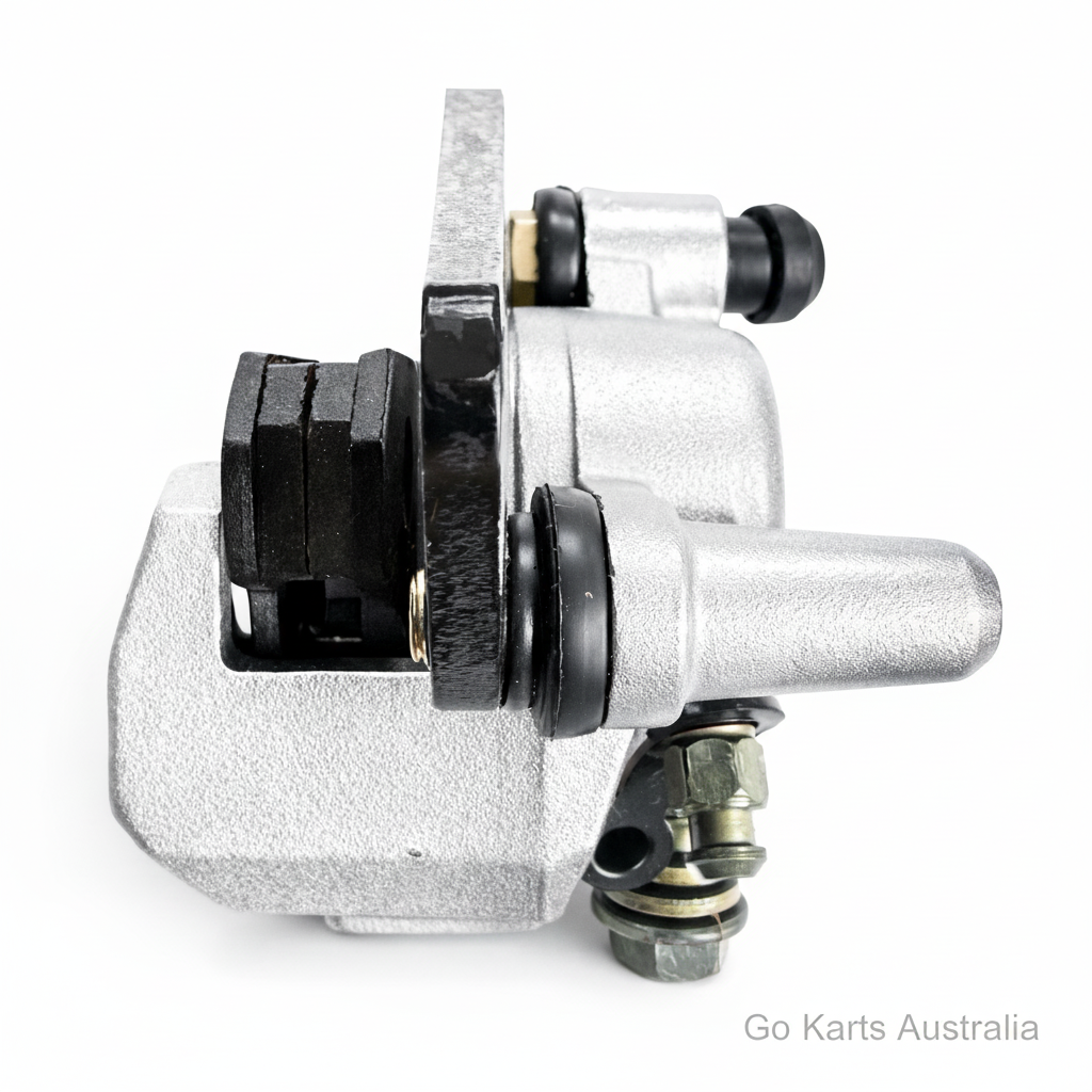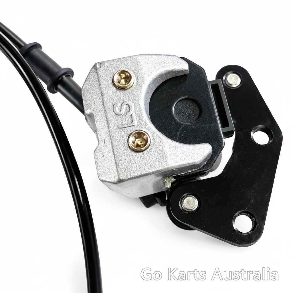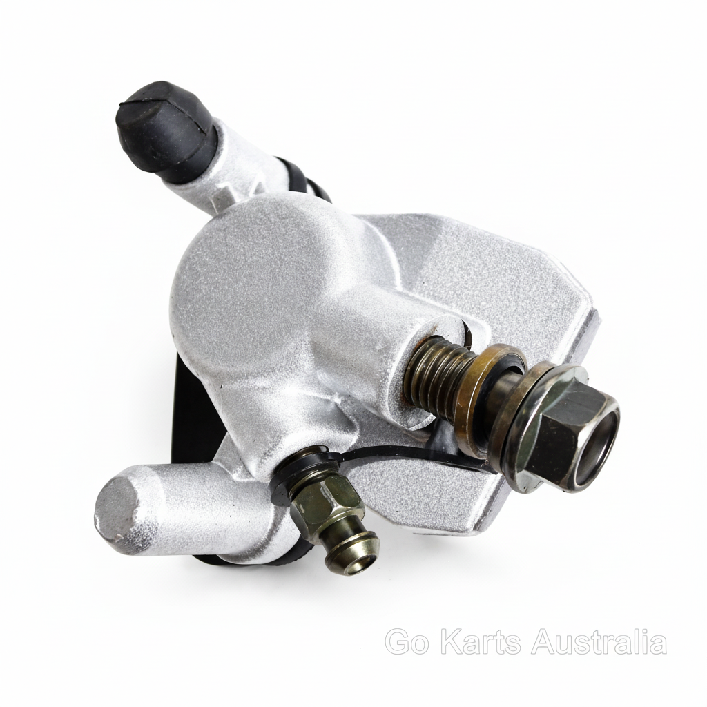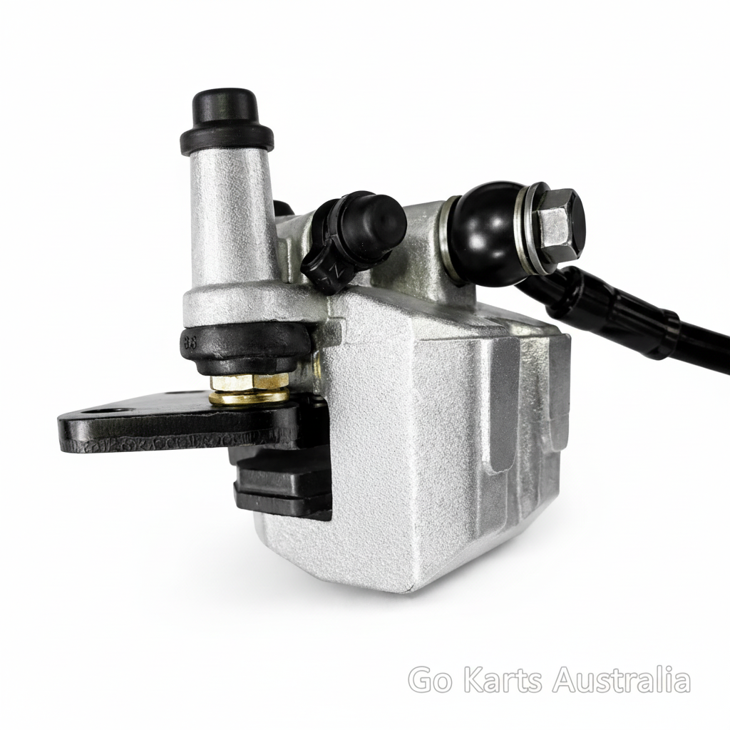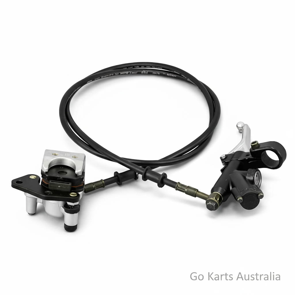 Hydraulic Disc Brake assembly complete with calliper, hose and brake lever for butterfly steering wheel. Designed to increase brake capacity on Off Road Drift Go Karts. The brake pads contain no asbestos and can be easily replaced when required. Length of hydraulic hose approx. 140 cm from lever to calliper. Please note these are a replacement part and may require adaptations to fit some karts not originally fitted with Disc brakes