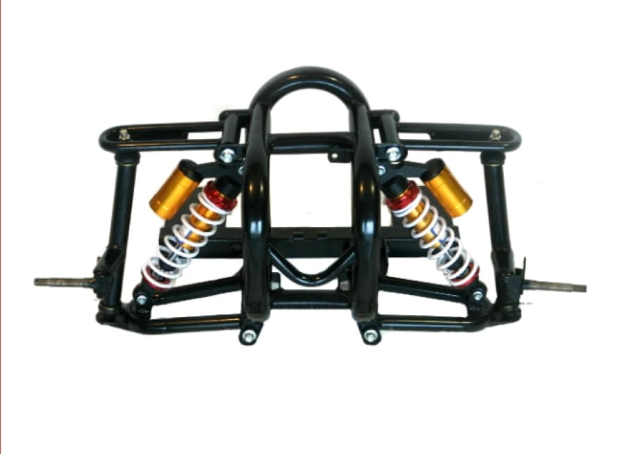 Independent Front suspension for Bulldog Go Karts with foot controls. Comes complete with shocks and rack and pinion steering. Distance between mounting holes 245 mm.